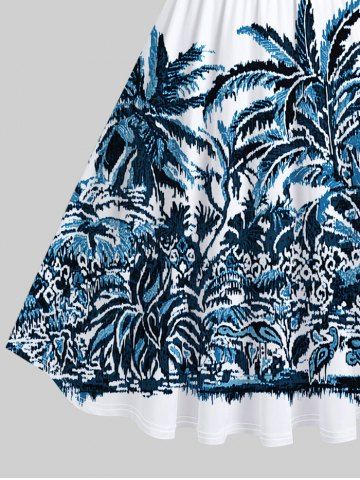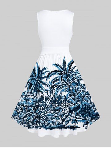 Plus Size Tropical Coconut Tree Flamingo Stripes Print Hawaii Vintage Dress - Multi-a - L