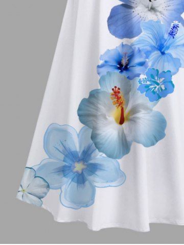 Plus Size Tropical Flower Print Cold Shoulder Crisscross Hawaii Maxi Dress - White - 3x