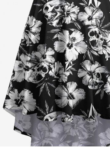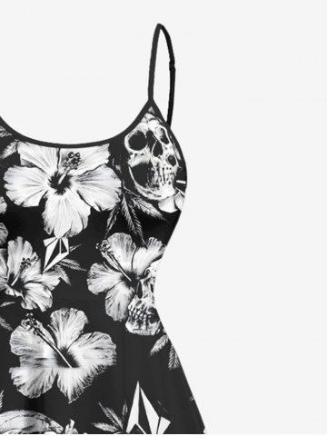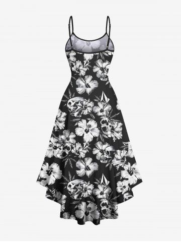Plus Size Tropical Flower Skulls Print High Low Hawaii Cami Dress - Black - S