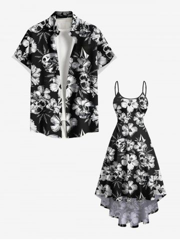Tropical Flower Skulls Print Plus Size Matching Hawaii Beach Outfit For Couples