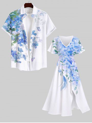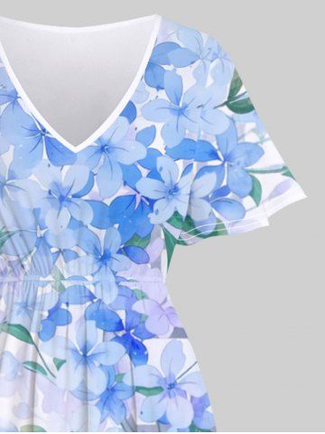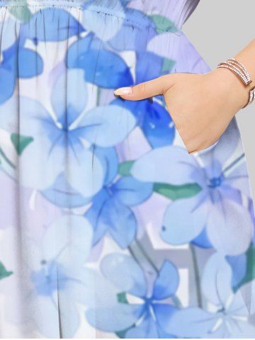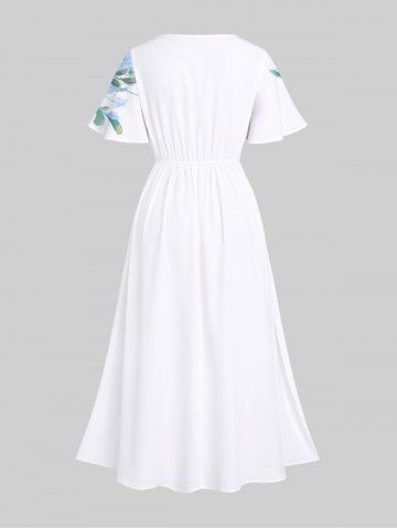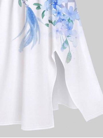 Plus Size Tropical Flowers Leaf Print Split Hawaii Midi Dress - White - 4x