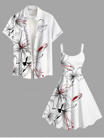 Plus Size Tropical Flowers Print Hawaii Tank Dress - White - 1x