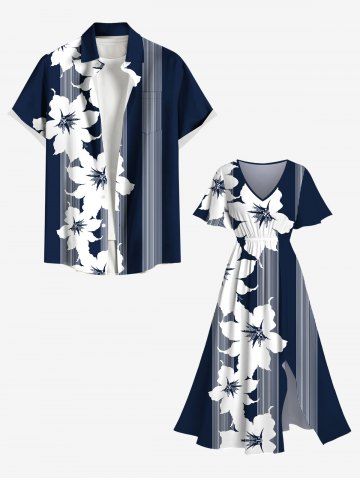 Graphic Dresses > Plus Size Tropical Flowers Stripe Print Split Hawaii Midi Dress