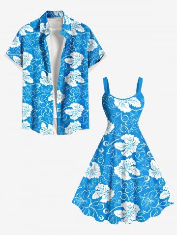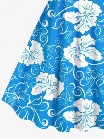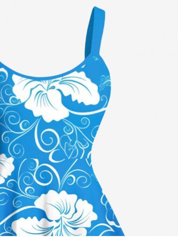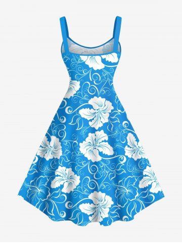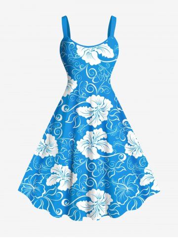 Plus Size Tropical Hibiscus Flower Print Hawaii Tank Dress - Blue - 3x
