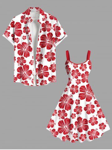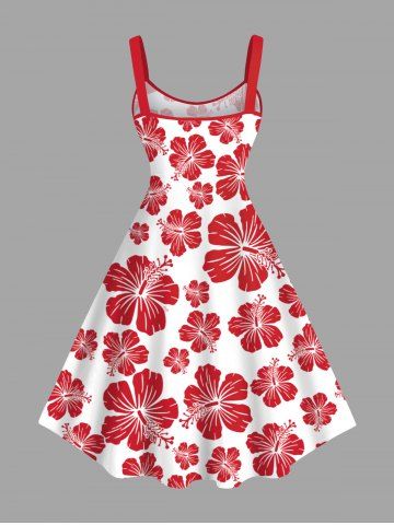 Plus Size Tropical Hibiscus Flower Print Hawaii Tank Dress - Red - 5x