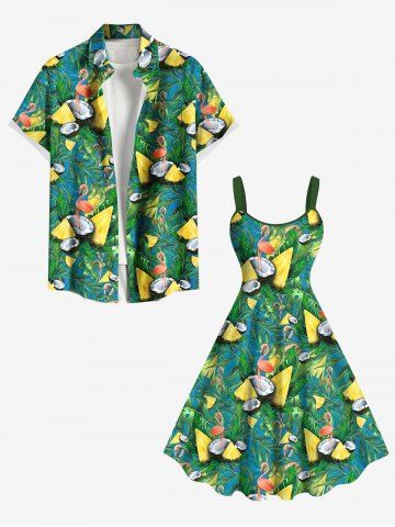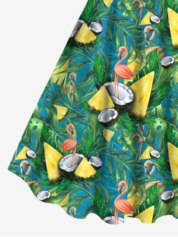Plus Size Tropical Leaf Coconut Pineapple Flamingo Print Hawaii A Line Tank Dress - Green - 3x