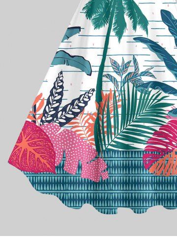 Plus Size Tropical Leaf Coconut Tree Line Print Hawaii Backless A Line Tank Dress - Multi-a - Xs