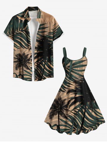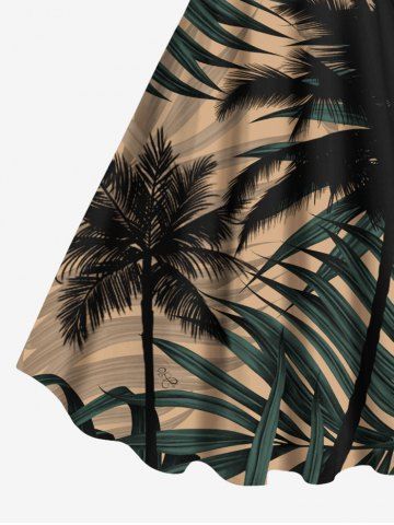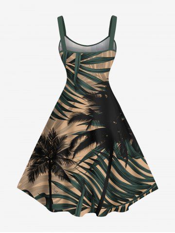 Plus Size Tropical Leaf Coconut Tree Print Hawaii Tank Dress - Light Coffee - 3x