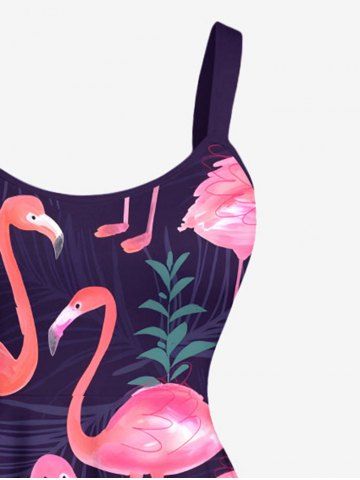 Plus Size Tropical Leaf Flamingo Print Hawaii A Line Tank Dress - Navy Blue - 1x