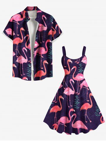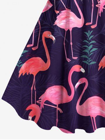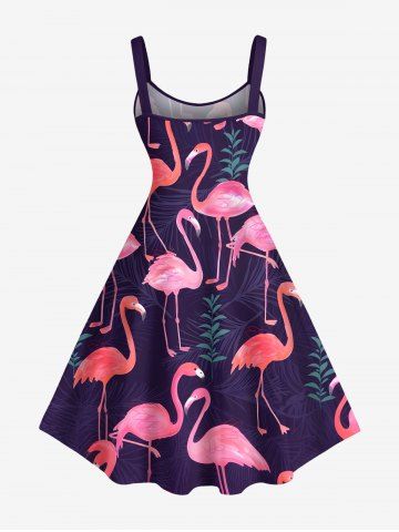 Graphic Dresses > Plus Size Tropical Leaf Flamingo Print Hawaii A Line Tank Dress