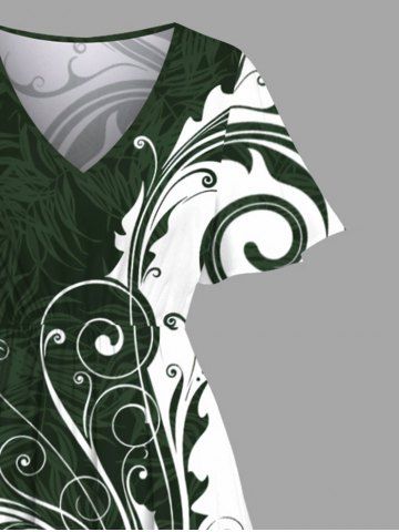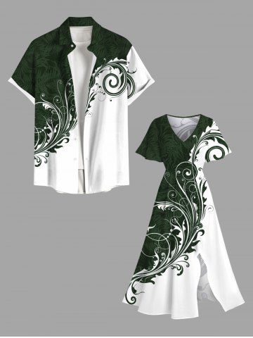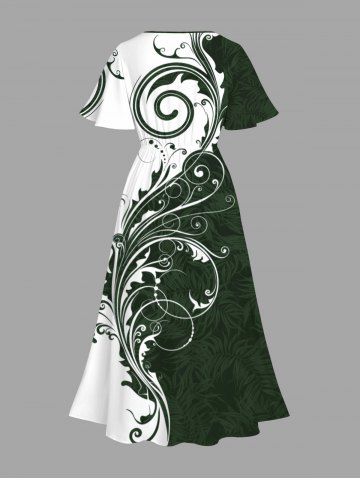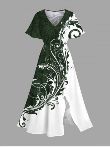 Graphic Dresses > Plus Size Tropical Leaf Floral Print Split Hawaii Midi Dress