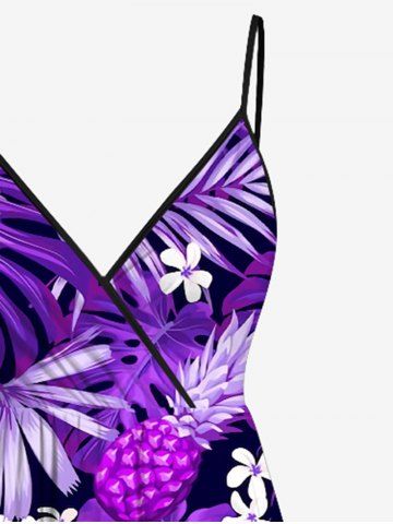 Plus Size Tropical Leaf Flower Pineapple Print Hawaii Cami Dress - Purple - Xs
