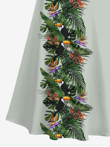 Plus Size Tropical Leaf Flower Print Cold Shoulder Crisscross Hawaii Maxi Dress - Gray - Xs