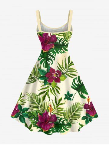 Graphic Dresses > Plus Size Tropical Leaf Flower Print Hawaii A Line Tank Dress