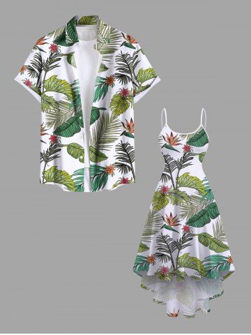 Plus Size Tropical Leaf Flower Print Hawaii High Low Asymmetric Cami Dress - Green - S