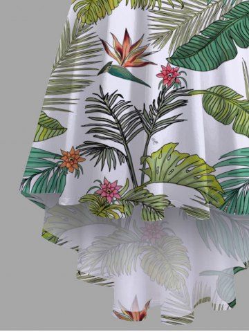 Graphic Dresses > Plus Size Tropical Leaf Flower Print Hawaii High Low Asymmetric Cami Dress