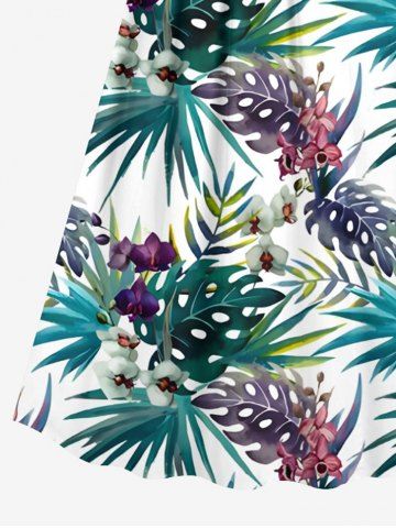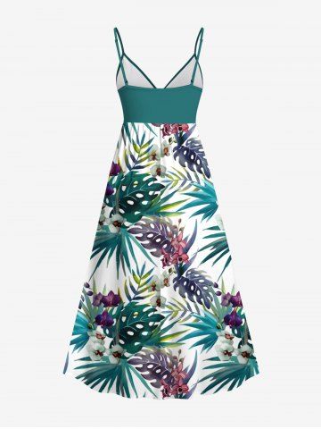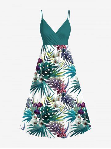 Graphic Dresses > Plus Size Tropical Leaf Flower Print Hawaii Surplice A Line Cami Dress