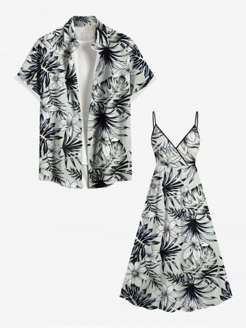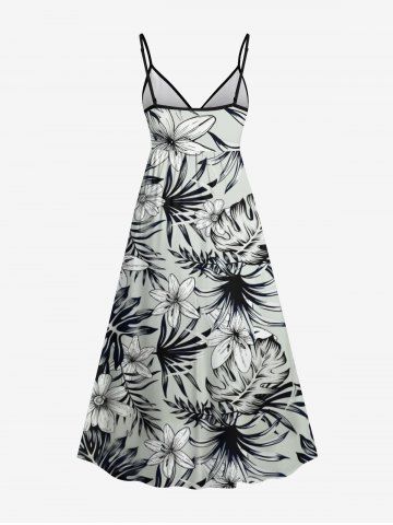 Plus Size Tropical Leaf Flower Print Surplice Hawaii Cami Dress - Light Gray - 1x