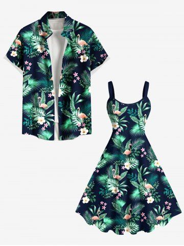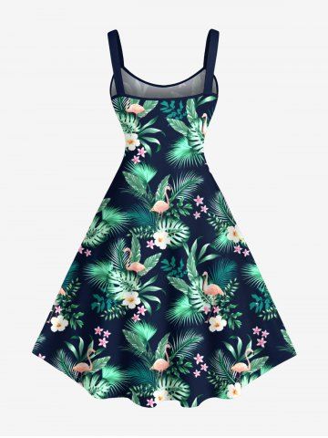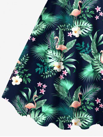 Graphic Dresses > Plus Size Tropical Leaf Flowers Flamingo Print Hawaii Tank Dress
