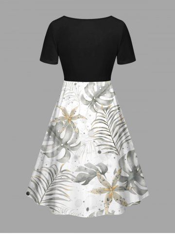Plus Size Tropical Leaf Flowers Print Cinched Hawaii Dress - White - 2x