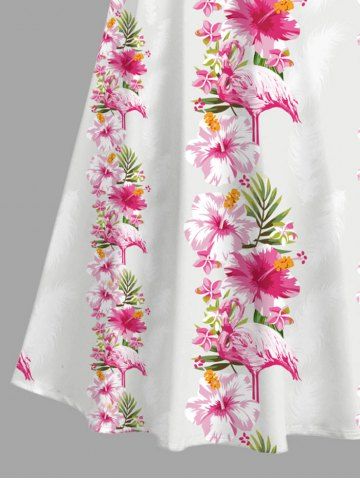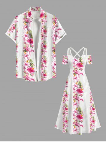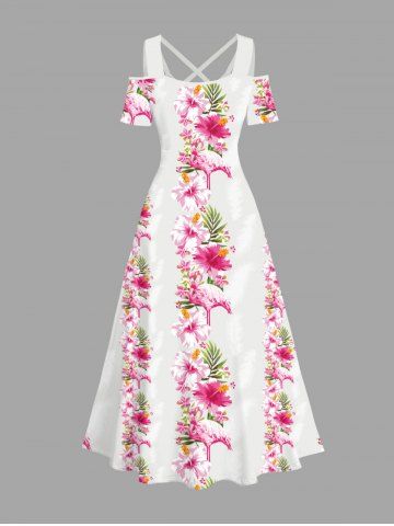 Plus Size Tropical Leaf Flowers Print Cold Shoulder Crisscross Hawaii Maxi Dress - Light Pink - 6x