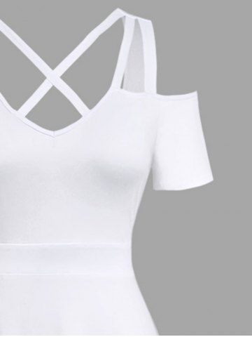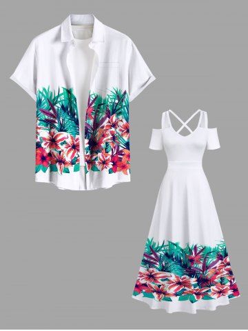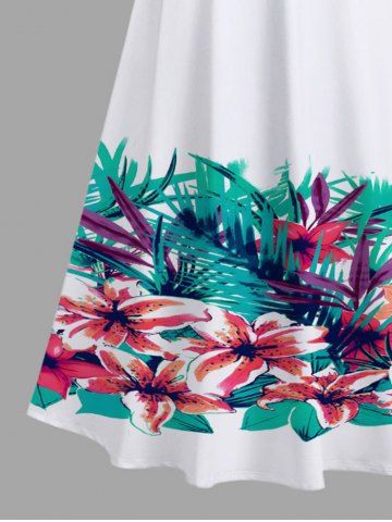 Plus Size Tropical Leaf Flowers Print Cold Shoulder Crisscross Hawaii Maxi Dress - White - 4x