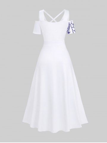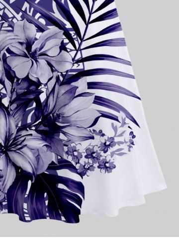 Plus Size Tropical Leaf Flowers Print Crisscross Cold Shoulder Hawaii Maxi Dress - White - 4x