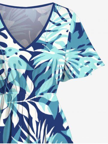 B*****y4Plus Size Tropical Leaf Flowers Print Hawai Split Midi DressColor: BLUE Size: 3XColour is more teal than blue. Light fabric.