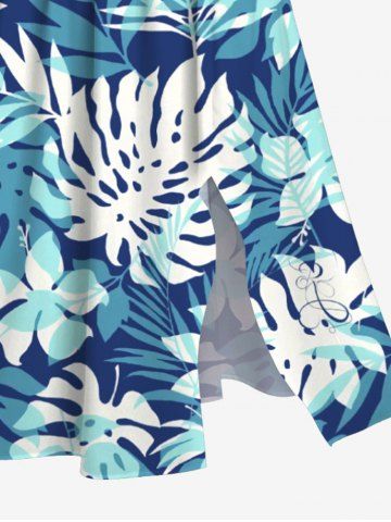 B*****y4Plus Size Tropical Leaf Flowers Print Hawai Split Midi DressColor: BLUE Size: 3XColour is more teal than blue. Light fabric.