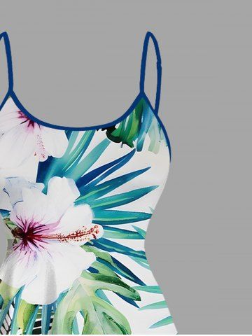 Graphic Dresses > Plus Size Tropical Leaf Flowers Print High Low Hawaii Cami Dress