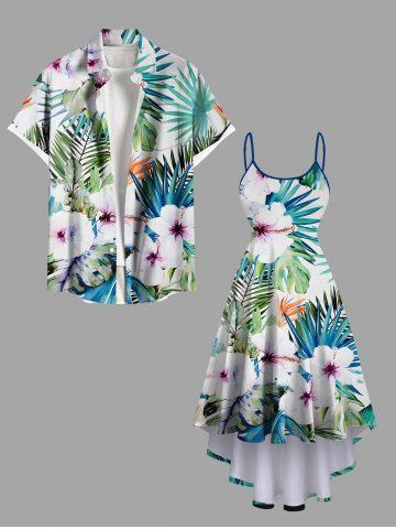 Graphic Dresses > Plus Size Tropical Leaf Flowers Print High Low Hawaii Cami Dress