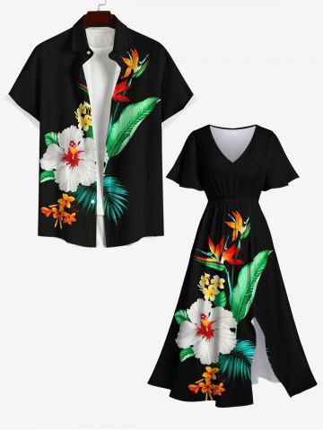 v*****s4Tropical Leaf Flowers Print Plus Size Matching Hawaii Beach Outfit For CouplesColor: BLACKJust as described. The material is cheap and the dress fits off. The shirt fits perfect.