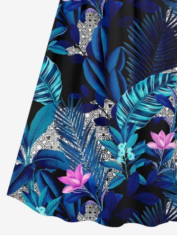 Plus Size Tropical Leaf Flowers Print Surplice Hawaii Cami Dress - Deep Blue - 4x