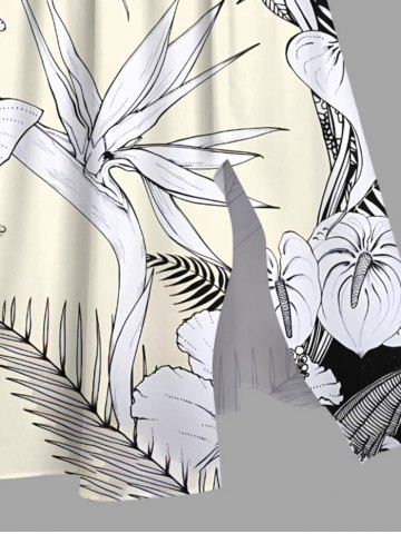 Plus Size Tropical Leaf Hibiscus Flower Branch Print Hawaii Split Pocket A Line Midi Dress - White - Xs