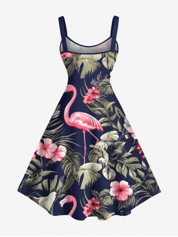 Graphic Dresses > Plus Size Tropical Leaf Hibiscus Flower Flamingo Print Hawaii A Line Tank Dress