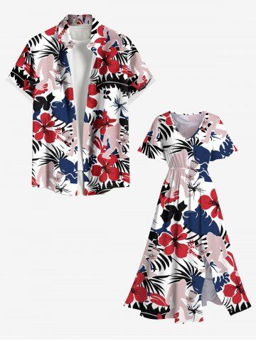 Graphic Dresses > Plus Size Tropical Leaf Hibiscus Flower Gorilla Print Hawaii Split Pocket A Line Midi Dress