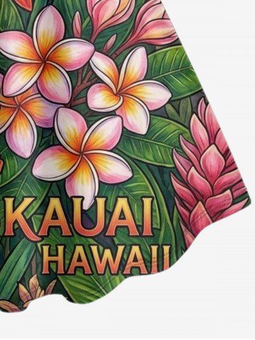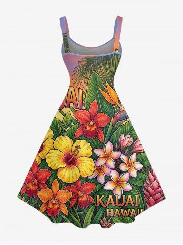 Graphic Dresses > Plus Size Tropical Leaf Hibiscus Flower Letter Print Hawaii A Line Dress