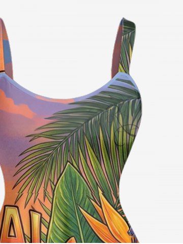 Plus Size Tropical Leaf Hibiscus Flower Letter Print Hawaii A Line Dress - Orange - 5x