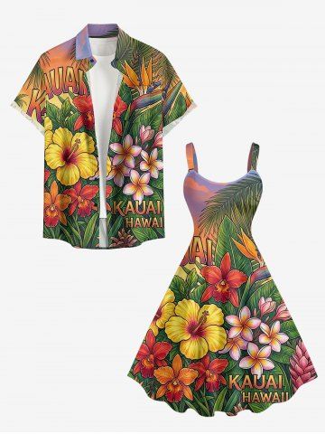 Graphic Dresses > Plus Size Tropical Leaf Hibiscus Flower Letter Print Hawaii A Line Dress