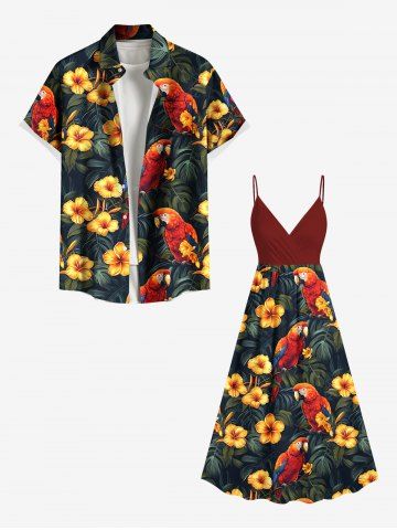 Graphic Dresses > Plus Size Tropical Leaf Hibiscus Flower Parrot Print Hawaii Surplice A Line Cami Dress