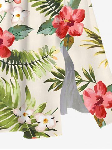 Plus Size Tropical Leaf Hibiscus Flower Pineapple Print Hawaii Split Pocket A Line Midi Dress - Apricot - 6x