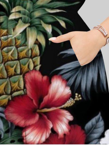Graphic Dresses > Plus Size Tropical Leaf Hibiscus Flower Pineapple Print Split Hawaii Midi Dress