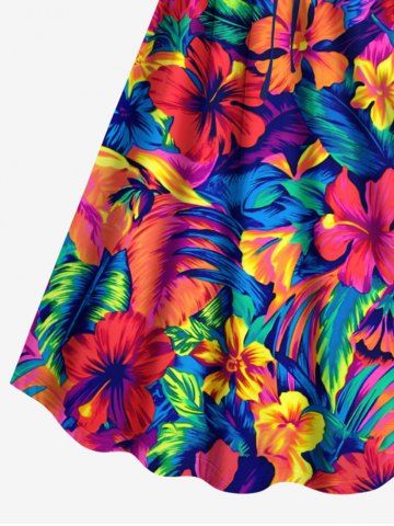 Graphic Dresses > Plus Size Tropical Leaf Hibiscus Flower Print Cinched Hawaii Dress