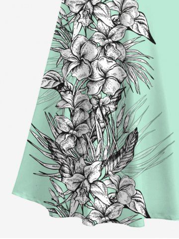 Plus Size Tropical Leaf Hibiscus Flower Print Cold Shoulder Crisscross Hawaii Maxi Dress - Green - L