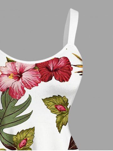 Plus Size Tropical Leaf Hibiscus Flower Print Hawaii A Line Dress - White - Xs