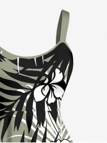 Plus Size Tropical Leaf Hibiscus Flower Print Hawaii A Line Dress - Light Green - M