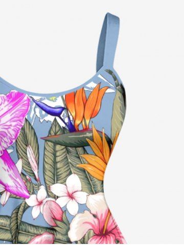 Plus Size Tropical Leaf Hibiscus Flower Print Hawaii A Line Dress - Powder Blue - Xs
