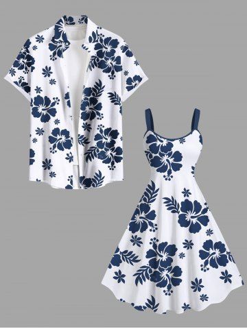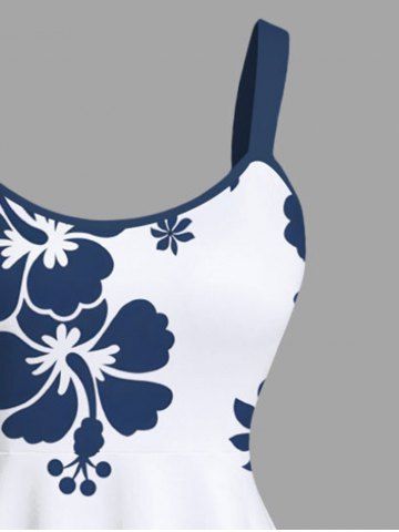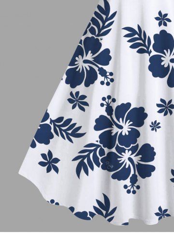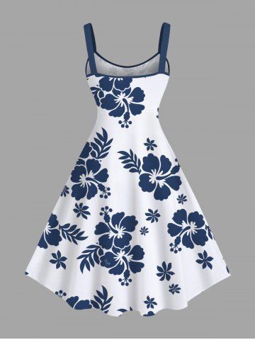 Plus Size Tropical Leaf Hibiscus Flower Print Hawaii A Line Tank Dress - White - 4x