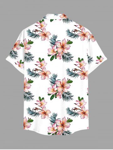 Plus Size Tropical Leaf Hibiscus Flower Print Hawaii Button Pocket Shirt For Men - White - 2xl