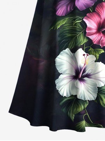 Graphic Dresses > Plus Size Tropical Leaf Hibiscus Flower Print Hawaii Cold Shoulder Crisscross A Line Maxi Dress